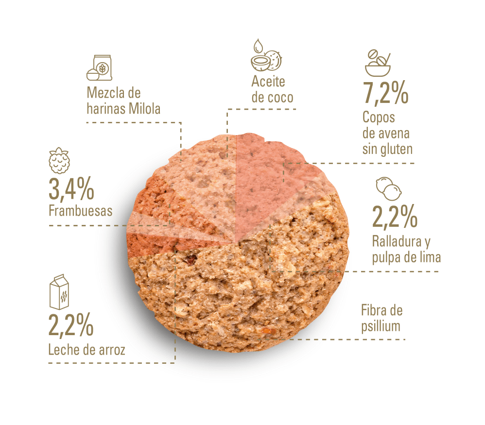 Copos de avena sin gluten, frambuesa jugosa y un toque refrescante de lima se unen en una galleta crujiente, sabrosa y llena de carácter. Inspirada en el clásico porridge, pero lista para llevar.