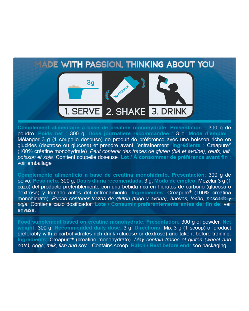 La nostra Creatina 100% amb Creapure® és una fina pols blanca de sabor neutre elaborat a partir de cianamida i sarcosonat. Creapure® és la forma de creatina més estudiada al món i està catalogada per nombrosos estudis com a segura i efectiva. Aquesta marca patentada de creatina monohidrat es caracteritza per la seva alta qualitat i seguretat. És una de les millors del mercat.