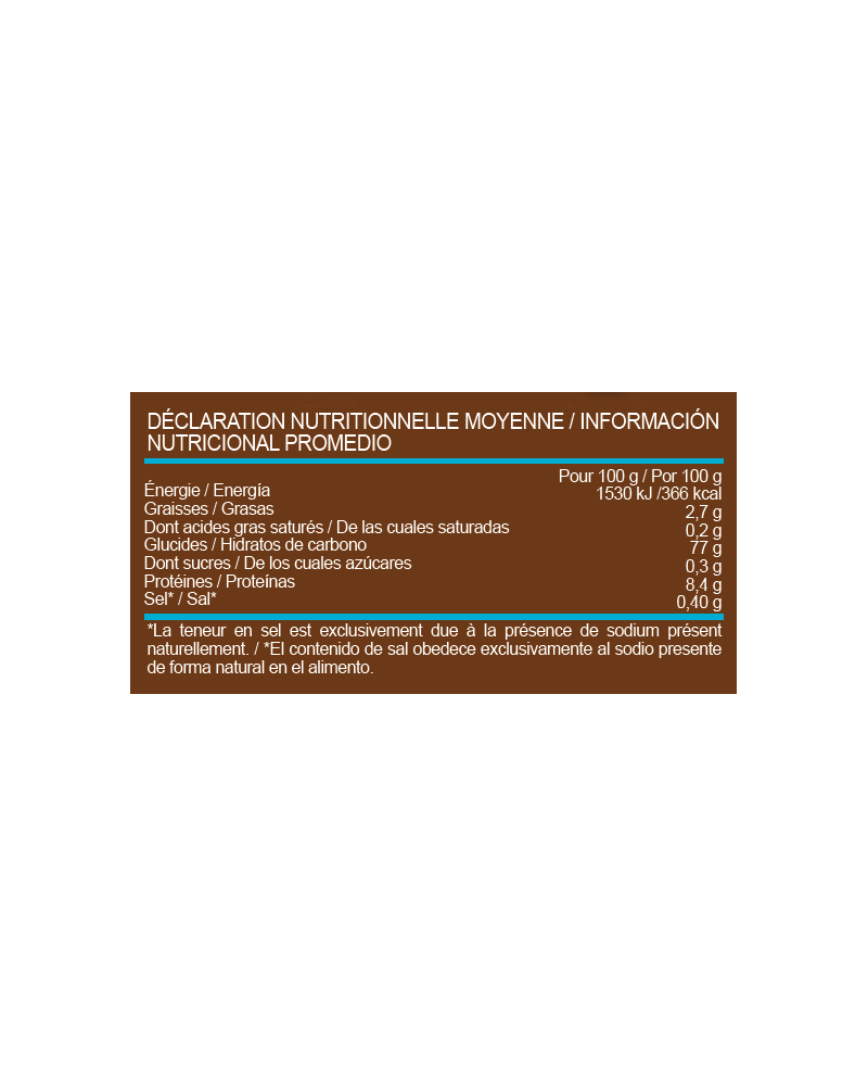 Farina d'arròs precuita, amb edulcorants. Sabor xocolata. Pes net: 1 kg. Ingredients: Farina d'arròs precuinada, cacau en pols, aroma i edulcorants (sucralosa, glucòsids d'esteviol i acesulfam K).